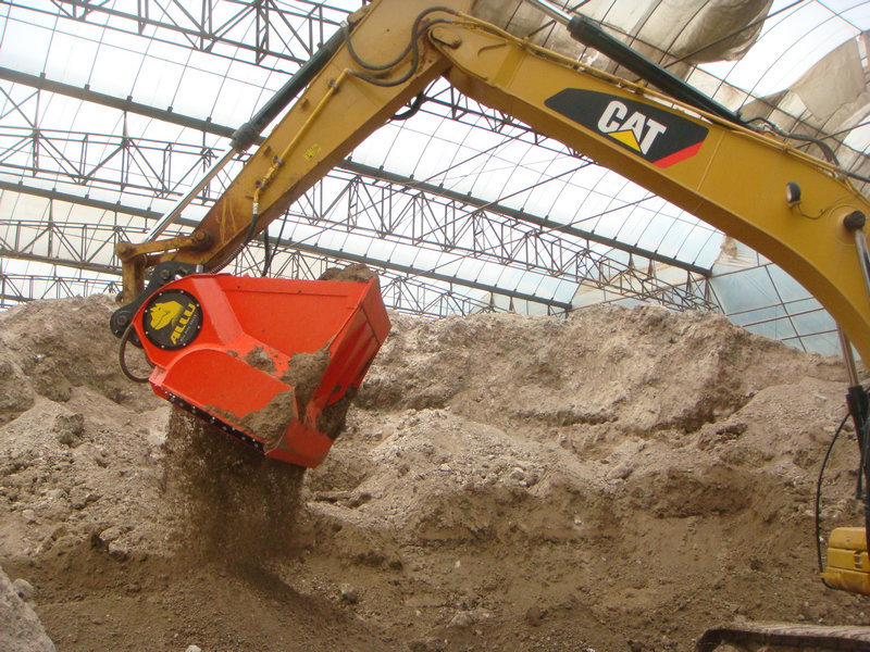 篩分破碎鏟斗適用于裝載機和挖掘機,挖掘機可以正鏟安裝也可以反鏟安裝;篩分、破碎、混合、曝氣和裝載可以一步完成。可以用于污染土壤修復,管道細土篩分,有機肥翻堆翻拋作業(yè),建筑垃圾篩分,動物糞便堆肥曝氣等工作。