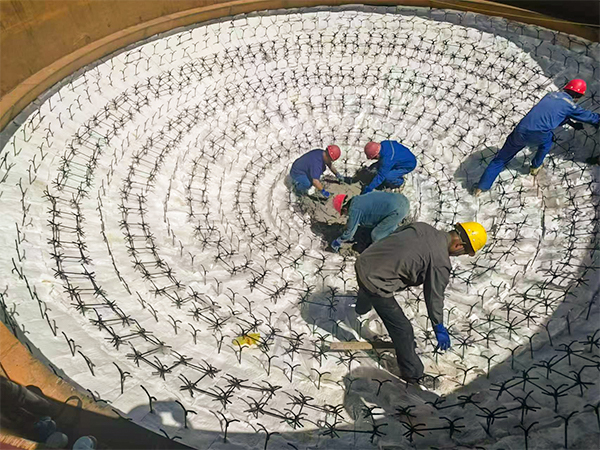 山西柳林循環流化床鍋爐砌筑項目 爐墻耐火磚砌筑 鍋爐內襯抓釘焊接 不定形耐火材料施工效果 耐火材料出現開裂、脫落、···