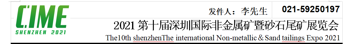 2021第十屆深圳國(guó)際非金屬礦暨砂石尾礦展覽會(huì)將在深圳國(guó)際會(huì)展中心迎來(lái)第十屆展會(huì),預(yù)計(jì)展會(huì)將達(dá)到300家展商,50.000平米的展出面積,30.000名專業(yè)觀眾的更大規(guī)模。