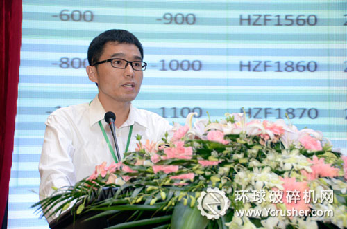 眾所周知,水泥礦山開采剝離產(chǎn)生大量廢石,排出的廢石不僅占用大量寶貴耕地,而且企業(yè)每年還需要支付大量的土地占用費(fèi),如果處置不當(dāng)還對人民群眾的生命安全造成威脅。洛陽大華重型機(jī)械銷售部長韓磊正作了《利用水泥礦山加工人工砂石骨料成套技術(shù)》的主題報告。