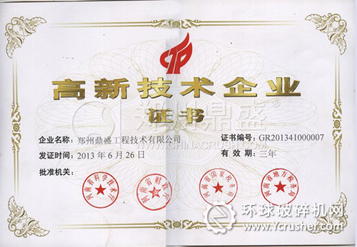 經(jīng)河南省高新技術(shù)企業(yè)認(rèn)定管理工作領(lǐng)導(dǎo)小組組織專家評審,老牌破碎機廠家鄭州鼎盛工程技術(shù)有限公司通過評審,榮獲“高新技術(shù)企業(yè)”稱號,該稱號對于企業(yè)科技轉(zhuǎn)型、企業(yè)品牌形象的提升、企業(yè)市場和資本價值的提高都有著重要的作用,鄭州鼎盛品牌形象也獲得進一步提升。