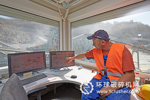 利用遠(yuǎn)程控制系統(tǒng),在安全、舒適、寬敞和配備有空調(diào)的操作室內(nèi),Tomasz Muzyka即可控制Ebersbach采石場(chǎng)的整個(gè)固定式破碎裝置。