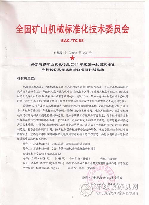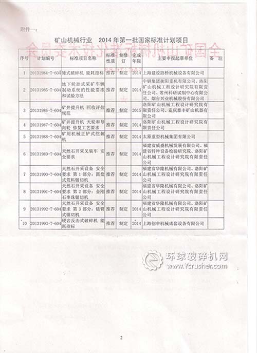 關(guān)于通報(bào)礦山機(jī)械行業(yè)2014年度第一批國家標(biāo)準(zhǔn)和機(jī)械行業(yè)標(biāo)準(zhǔn)制修訂項(xiàng)目計(jì)劃的函