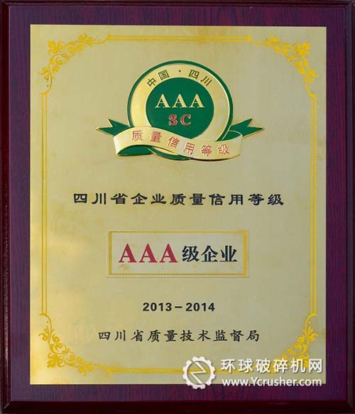 川礦集團公司日前,從省質檢局獲悉,四川礦山機器(集團)有限責任公司喜獲“四川省企業(yè)質量信用等級AAA級企業(yè)”稱號,并頒發(fā)了榮譽證書。