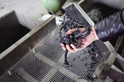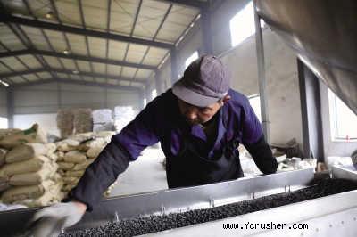 振動篩自動篩選出口徑大小合格標準的顆粒,較長不合格的顆粒需通過粉碎機粉碎再利用。