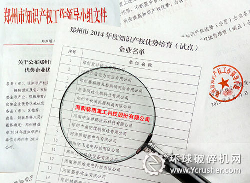 黎明重工被認(rèn)定為“2014年度知識(shí)產(chǎn)權(quán)優(yōu)勢(shì)培育企業(yè)”