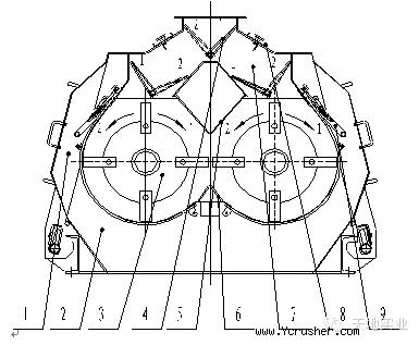 上部有進(jìn)料口,下部與底座連接,兩側(cè)裝有篩板,與轉(zhuǎn)子組成粉碎室。