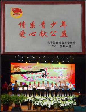 6月1日,由石嘴山市委宣傳部、共青團石嘴山市委員會、石嘴山市教體局、少先隊石嘴山市工作委員會等七家單位舉辦的“紅領巾相約中國夢,核心價值觀記心中”慶“六一”少先隊主題隊日活動在石嘴山市電視臺演播大廳舉行。活動對關注青少年成長、為青少年捐贈圖書的單位進行了表彰。寧夏輸送機知名企業(yè)天地奔牛公司獲得了由共青團石嘴山市委員會頒發(fā)的“情系青少年、愛心獻公益”獎牌。