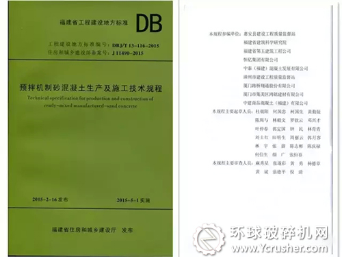 由省建科院主編、恒億建設公司參編的《預拌機制砂混凝土生產(chǎn)及施工技術(shù)規(guī)程》已于2015年5月1日開始實施。