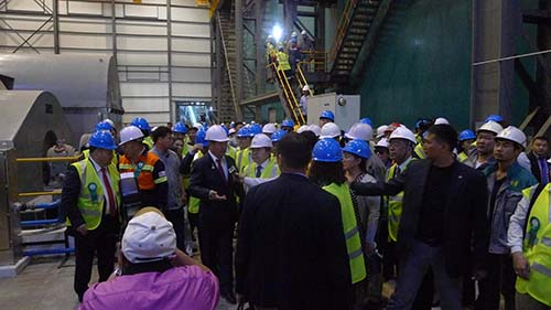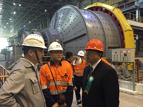 在額爾登特銅礦項(xiàng)目擴(kuò)產(chǎn)總指揮蓋勒蓋先生陪同下,額勒貝格道爾吉總統(tǒng)與參會(huì)嘉賓一起到磨浮現(xiàn)場(chǎng)進(jìn)行了參觀。在車間內(nèi),額勒貝格道爾吉總統(tǒng)看到公司承制的半自磨機(jī)和球磨機(jī)正在運(yùn)行,隨即詢問(wèn)蓋勒蓋先生,“這兩臺(tái)大型磨機(jī)是哪個(gè)國(guó)家制造的設(shè)備?”蓋勒蓋先生說(shuō):“這是來(lái)自中國(guó)的設(shè)備,是由中信重工提供的,中信重工的大型磨機(jī)全世界都在使用,在澳洲、南美、非洲都有廣泛應(yīng)用,客戶反映均運(yùn)行良好。”額勒貝格道爾吉總統(tǒng)表示:“很好,很好!”