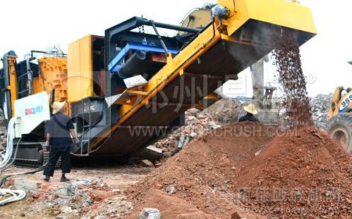 無揚塵油、電兩用履帶式移動破碎站在鄭州高新區(qū)百爐屯村拆遷現(xiàn)場對建筑垃圾進行就地粉碎 目前,鄭州鼎盛公司生產(chǎn)的兩臺移動破碎站正在百爐屯村拆遷現(xiàn)場對廢棄磚塊、水泥等建筑廢棄物進行就地粉碎,在現(xiàn)場可以看到,鉤機不斷地將含有鋼筋的大塊建筑垃圾喂入無揚塵油、電兩用履帶式移動破碎站,移動破碎站將建筑垃圾粉碎后,將成品骨料和鋼筋進行分離,由電磁除鐵器將鋼筋分選出來,成品骨料則被輸送到成品料堆。