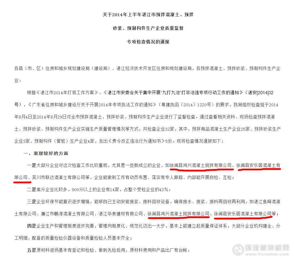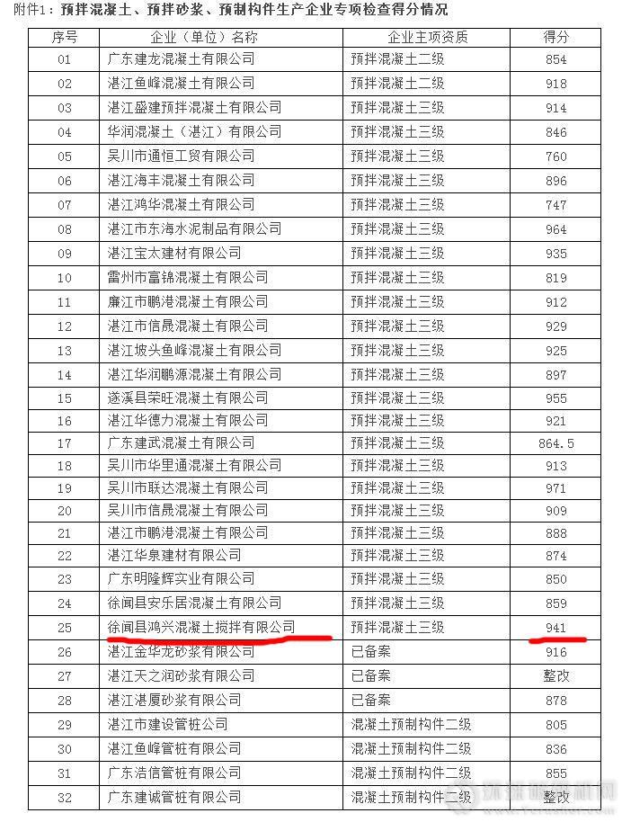 2014年湛江市住建局對全市范圍內(nèi)預(yù)拌混凝土企業(yè)進(jìn)行質(zhì)量監(jiān)督專項檢查,鴻興公司以高分位居前五名。資料鏈接: