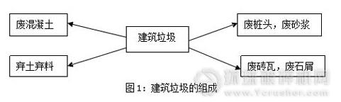 建筑垃圾主要是由事業(yè)單位和居民個(gè)人這兩大主體制造的,其中90%來自于建筑單位和施工單位在新建、改建、擴(kuò)建和拆除建筑物、構(gòu)筑物、管網(wǎng)等產(chǎn)生,而居民個(gè)人在裝修和裝飾房子的過程中產(chǎn)生的棄土、棄料和其他垃圾所占的比重較少。從來源我們可以知道,建筑垃圾主要是對(duì)建筑作業(yè)的過程中產(chǎn)生的,主要包括廢棄的磚瓦,砌塊、砂漿、混凝土、樁頭以及包裝材料,如圖1所示。
