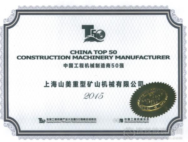 機械工業協會、美國設備制造商協會、日本建設機械協會、韓國建設機械協會共同主辦的“2015全球工程機械產業大會暨50強峰會”上,山美又榮獲2015中國工程機械50強企業殊榮。