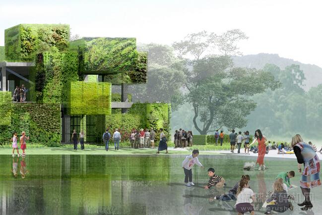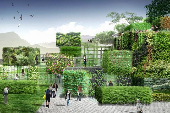 北京某建筑事務所基于福建泉州的國家藝術公園,做出了一個戶外裝置景觀的概念設想。方案展現了中國傳統藝術和這個新構筑物之間的關系,結合了當地哲學,園林文化和環境的特點,完成了一棟廢棄兩層混凝土結構框架的翻修改造。堆疊狀立方體塊藝術空間的靈感來源于中國傳統園林中常見的假山。盡管布滿植物,混凝土結構已然體現了假山的基本形式。公園將會展覽著名藝術家的藝術作品,游客可以漫游不同區域,感受豐富的社交體驗。