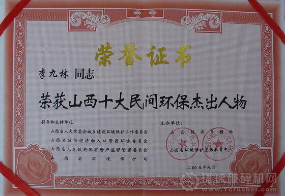 項目,被命名為國家重點環(huán)保示范工程,被環(huán)保部授予環(huán)境保護科學(xué)技術(shù)獎三等獎;被評為山西省環(huán)保推薦產(chǎn)品、省環(huán)保科技示范工程,被評為省高新技術(shù)優(yōu)秀項目,公司被命名為省環(huán)保示范單位。李九林本人獲得中國環(huán)境保護特別貢獻獎,受到黨和國家領(lǐng)導(dǎo)人的親切接見。