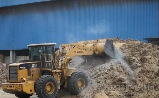圖為工人將廢料與秸稈或者稻草按照比例參配以保證燃燒的效率和安全。