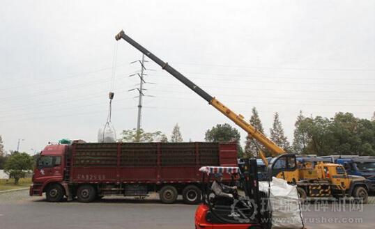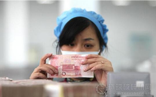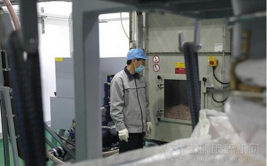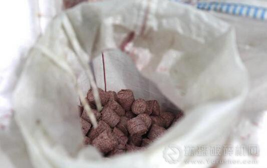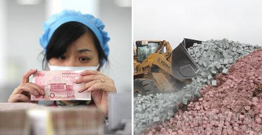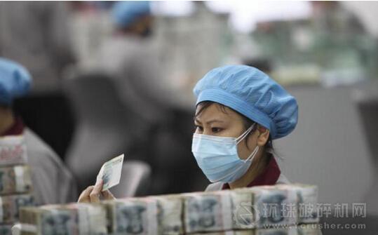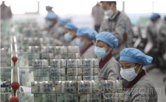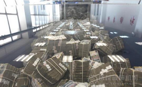 破碎機(jī)將人民幣壓塊破碎,以便更好地燃燒。