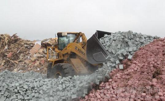 圖為推土機(jī)將兩種殘鈔廢料混合。
