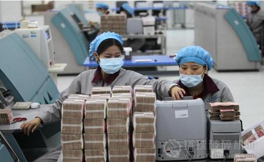 圖為在清分車(chē)間工人在識(shí)別假幣。