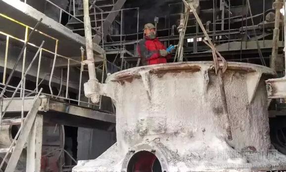 圓錐式破碎機退役了。(圖為礦業公司鉗工正在吊出圓錐