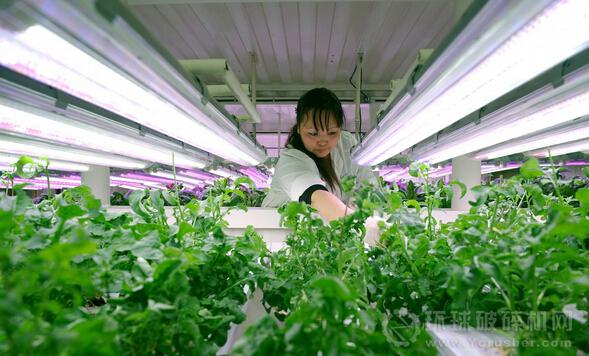 ▼ 一名婦女負責在實驗溫室里種植生菜,從而讓礦場職工每天都能吃上新鮮蔬菜。