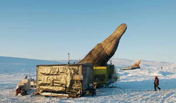 ▼ 鉆頭被包裹起來以防嚴寒造成設備毀損。在這里氣溫可以低至零下50攝氏度。