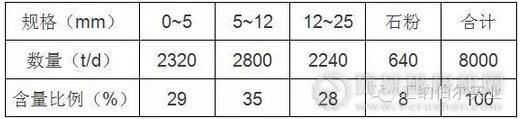 本項目設計產品方案可生產GB/T 14685—2011標準中規定的通用品和特制品。實際生產能力及顆粒級配分布會在一定范圍內波動,在工藝設計時采用綜合平均值。