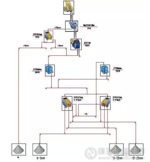 結合啟新骨料原料特性>120 MPa、屬中低硬度)及含土量較高、周邊石粉(<5mm)市場需求較為穩定但總量較小的基本情況,啟新骨料生產工藝確定為