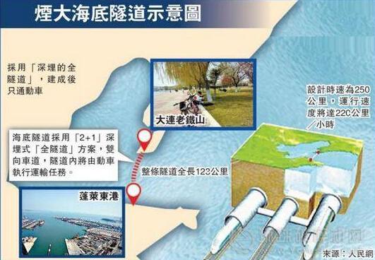 據遼寧省大連電視臺《大連經濟報道》11月27日報道,國務院正式審議2016年重點工程,其中渤海海峽跨海通道(即煙大海底隧道)施工方案已于日前正式出爐。