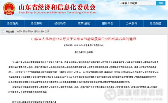 據悉,該獎勵名單是山東省政府根據《山東省節約能源條例》、《山東省“十二五”節能減排綜合性工作實施方案》和《山東省節能獎勵辦法》精神,經嚴格考評后確定。