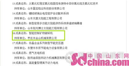 12月4日訊 近日,山東省人民政府通報表彰了2014年度山東省節能先進企業和優秀成果,由市經信委組織申報的棗莊市金山機械有限公司“智能控制礦物破碎機”榮獲山東省優秀節能成果獎,并獲得現金獎勵。