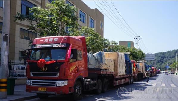 破碎篩分生產線全都裝載到位,11輛長23米的重型卡車組成的龐大車隊即將奔赴蒙古國,浙江諸暨店口的埃里斯克礦山工程