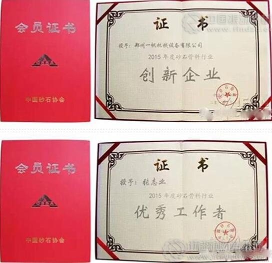 一帆機(jī)械獲“2015年度砂石骨料行業(yè)創(chuàng)新企業(yè)”榮譽(yù)稱號(hào)