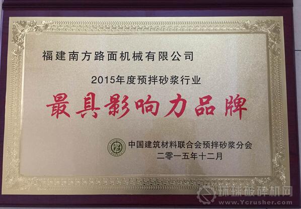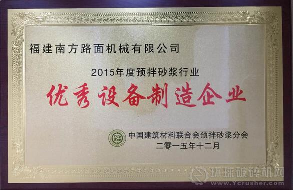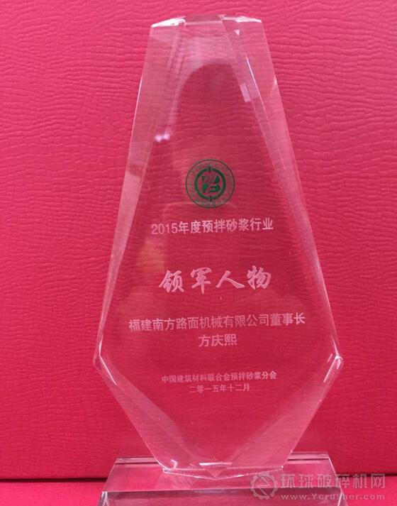 在預拌砂漿分會年會頒獎典禮上,就2015年度預拌砂漿行業做出突出貢獻、優秀生產企業、優秀設備制造商、有較大影響力的企業和行業領軍人物等進行表彰。南方路機榮獲2015年度預拌砂漿行業最具影響力品牌和2015年度預拌砂漿行業優秀設備制造企業大獎,南方路機董事長方慶熙被評為2015年度預拌砂漿行業領軍人物。