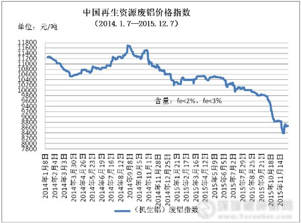 圖四:2014年至2015年12月廢鋁價格指數圖