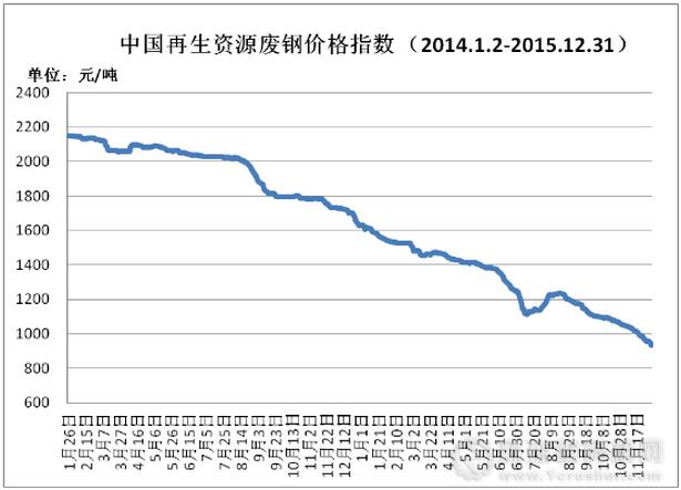 2015年全年廢鋼市場表現為弱勢運行,價格易跌難漲,成交放緩。中國再生資源廢鋼價格指數1月4日為1628元/噸,3月24日該指數為1463元/噸,累計下跌165元,跌幅10%。
