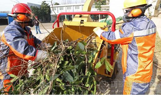 機械模式相結(jié)合:先把大件垃圾人工分解成一塊一塊,少部分壓機能處理的垃圾直接倒入壓機,大部分由大件木材粉碎機統(tǒng)一處理,經(jīng)粉碎機處理后形成顆粒狀木屑直接裝運到垃圾車,再運到火力發(fā)電廠或散入綠化地進行資源再利用。