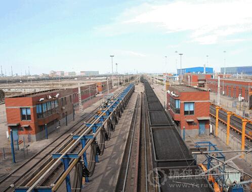 京唐港翻卸車間的三條美卓翻車機系統(tǒng)。