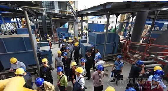 圖為與會嘉賓在查看設(shè)備運轉(zhuǎn)情況