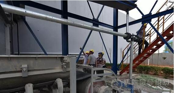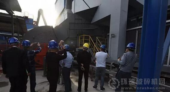 圖為孟電水泥骨料生產(chǎn)線使用的錘式破碎機吸引與會嘉賓駐足觀看