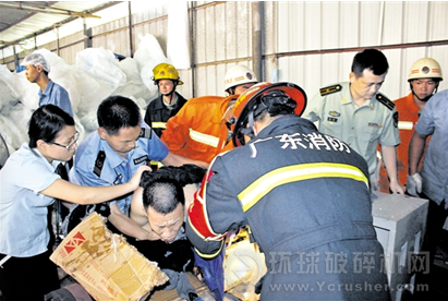 中山一工人手臂被卷進(jìn)塑料破碎機(jī)