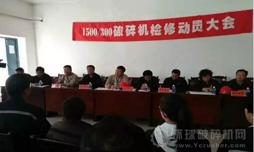 近期,破碎車間對(duì)1500/300破碎機(jī)進(jìn)行了檢修。6月1日下午,在破碎車間會(huì)議室召開了1500/300破碎機(jī)檢修工程動(dòng)員會(huì)。會(huì)議由設(shè)備部部長(zhǎng)席亮主持,公司設(shè)備動(dòng)力部劉建斌部長(zhǎng)及白云鐵礦副礦長(zhǎng)李守飚及各相關(guān)單位人員參加。
