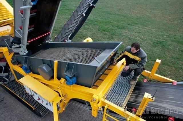 破碎機設(shè)備-TS3600篩分系統(tǒng) 高質(zhì)量生產(chǎn)不可缺少的移動式篩分系統(tǒng) TS3600擴展了Rubble Master篩分產(chǎn)品的應(yīng)用.該雙層移動式篩分配有超大顆粒篩分網(wǎng)的液壓折疊式進料斗,可通過大產(chǎn)量的RM80GO!,RM100GO!或裝載車直接進料.15.5噸的重量和小巧的外形設(shè)計使得該設(shè)備的運輸無須任何特別許可,并且在10分鐘內(nèi)便可準備就緒.移動履帶由遠程控制,一個人便可完成操作.篩分箱的角度和主卸料皮帶的角度均可調(diào)節(jié),以確保高效率生產(chǎn).