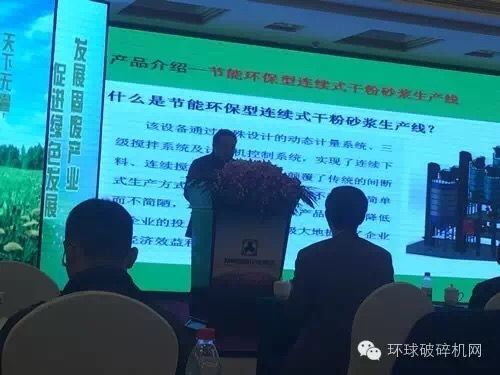 江蘇晨日環(huán)保總經(jīng)理徐祥來作《節(jié)能環(huán)保型連續(xù)式干粉砂漿生產(chǎn)線》報告,介紹企業(yè)簡介、產(chǎn)品介紹及設(shè)備優(yōu)點