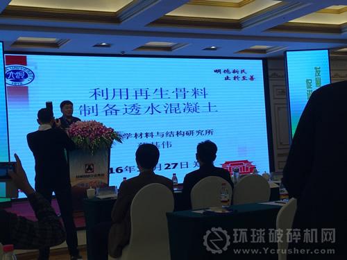 河南大學(xué)教授蔡基偉作《利用再生骨料制備透水混凝土》主題報告