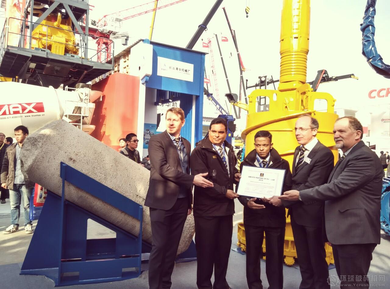 24日下午的2點(diǎn)30分,在露天展位區(qū)記者見證了德國(guó)寶峨機(jī)械設(shè)備有限公司總裁Dieter Stetter 先生,親自為斯里蘭卡售后團(tuán)隊(duì)頒發(fā)寶峨年度售后服務(wù)伙伴頒獎(jiǎng)。