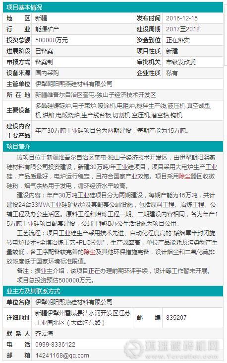 伊犁朝陽熙燕硅材料有限公司30萬噸/年工業(yè)硅項目