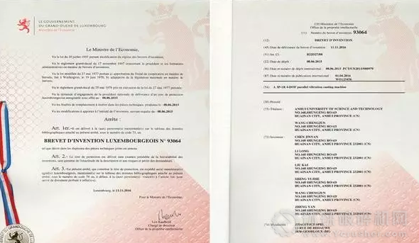 該發(fā)明專利以2015年8月的中國發(fā)明專利為優(yōu)先權(quán)向國際專利局申請PCT專利,獲得國際專利局發(fā)出的具有“新穎性、先進性和工業(yè)實用性”的國際階段審查結(jié)論;繼而于2016年5月通過中歐專利代理機構(gòu)進入申請盧森堡國家階段,并于近日獲得授權(quán)(授權(quán)日:2016年11月11日)。
