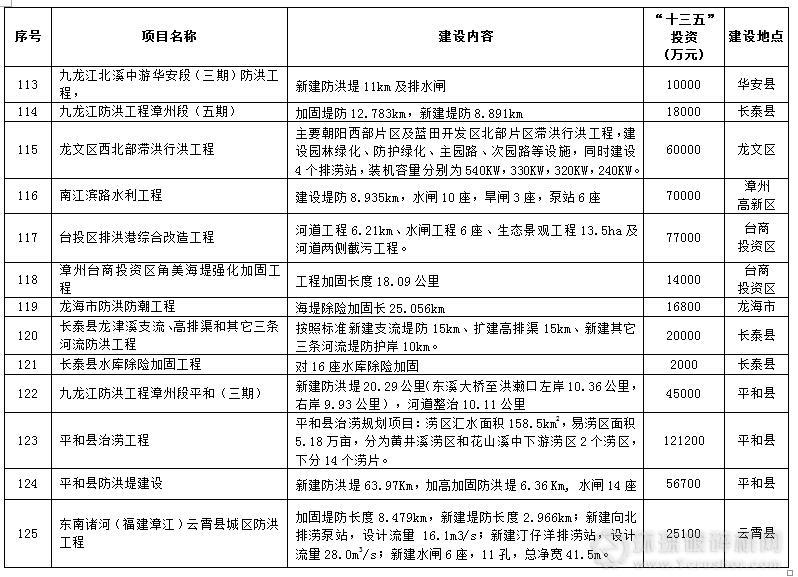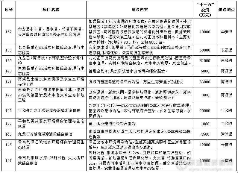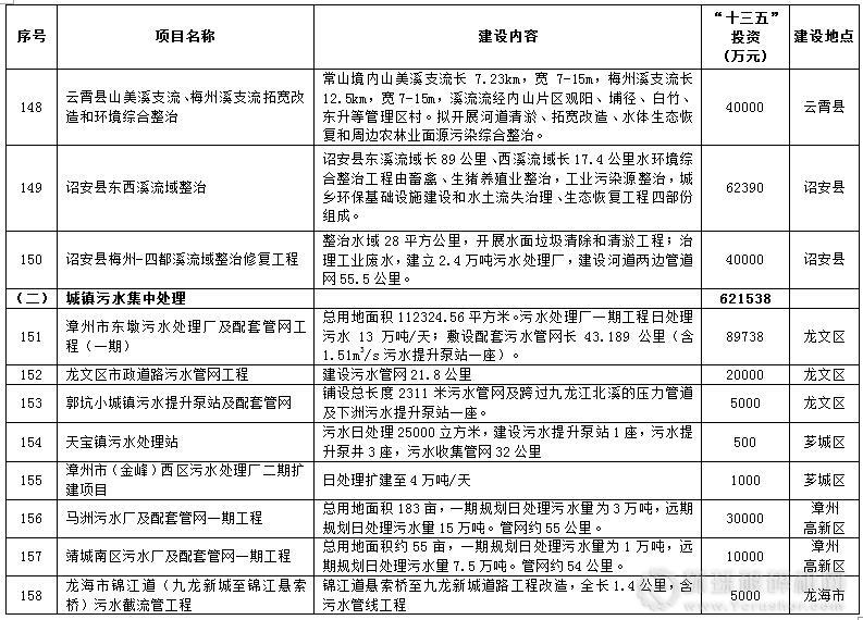 漳州市“十三五”生態(tài)市建設(shè)專項(xiàng)規(guī)劃重點(diǎn)項(xiàng)目表